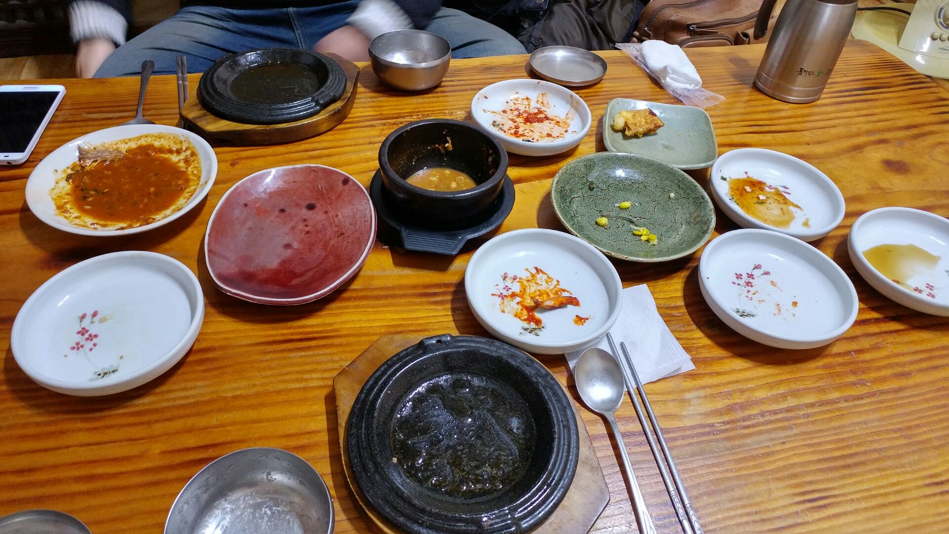 내껀 공기밥 양이 반도 안들어있던... 신랑은 그래도 그정도는 아니었음... 추가로 밥 하나랑 된장찌개, 반찬들좀 더 달라고 했는데.... 한참.... 기다려야 한다.....ㅠㅠ 손님들이 들어오시는건 알지만.... 글케 엄청 바쁜건 아니었는데... 한참을 빈 공기를 보며 멀뚱멀뚱.... 된장찌개를.... 그때그때 상마다 끓이시는건 아닌 것 같아서 찌개때문은 아닌 것 같은데 늦다....ㅠㅠ 그래도 맛나긴 하니까.... 좀 아쉬워도 감사히 먹었음 ㅋ